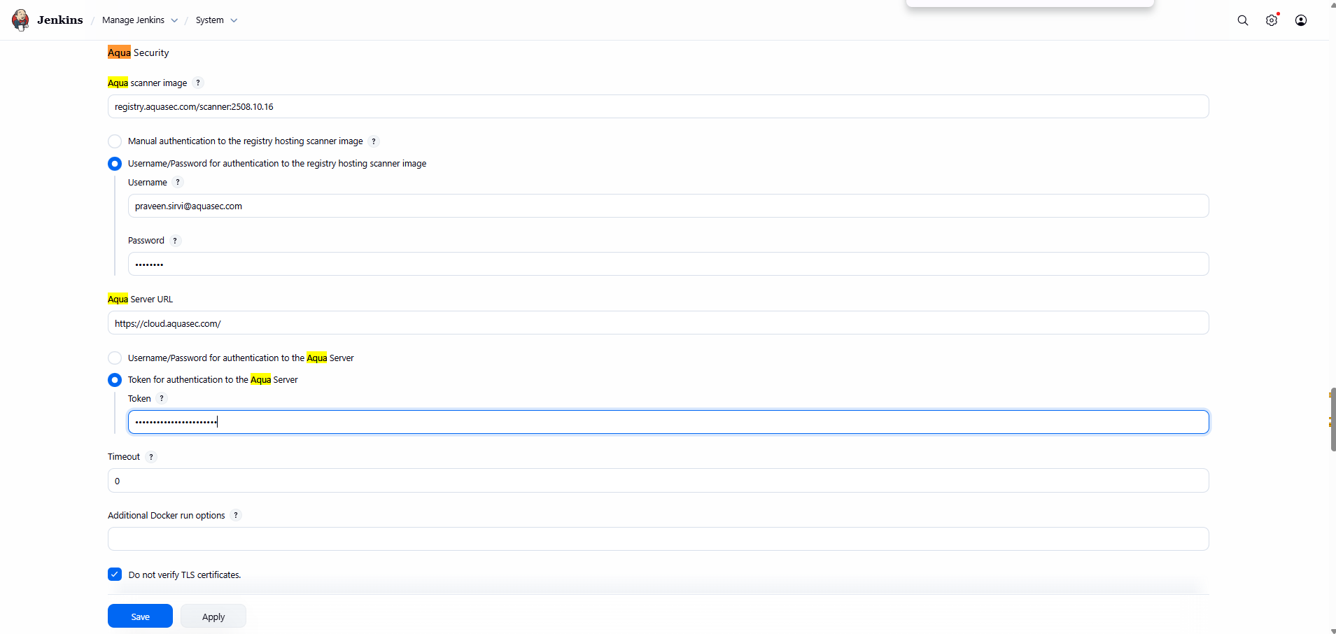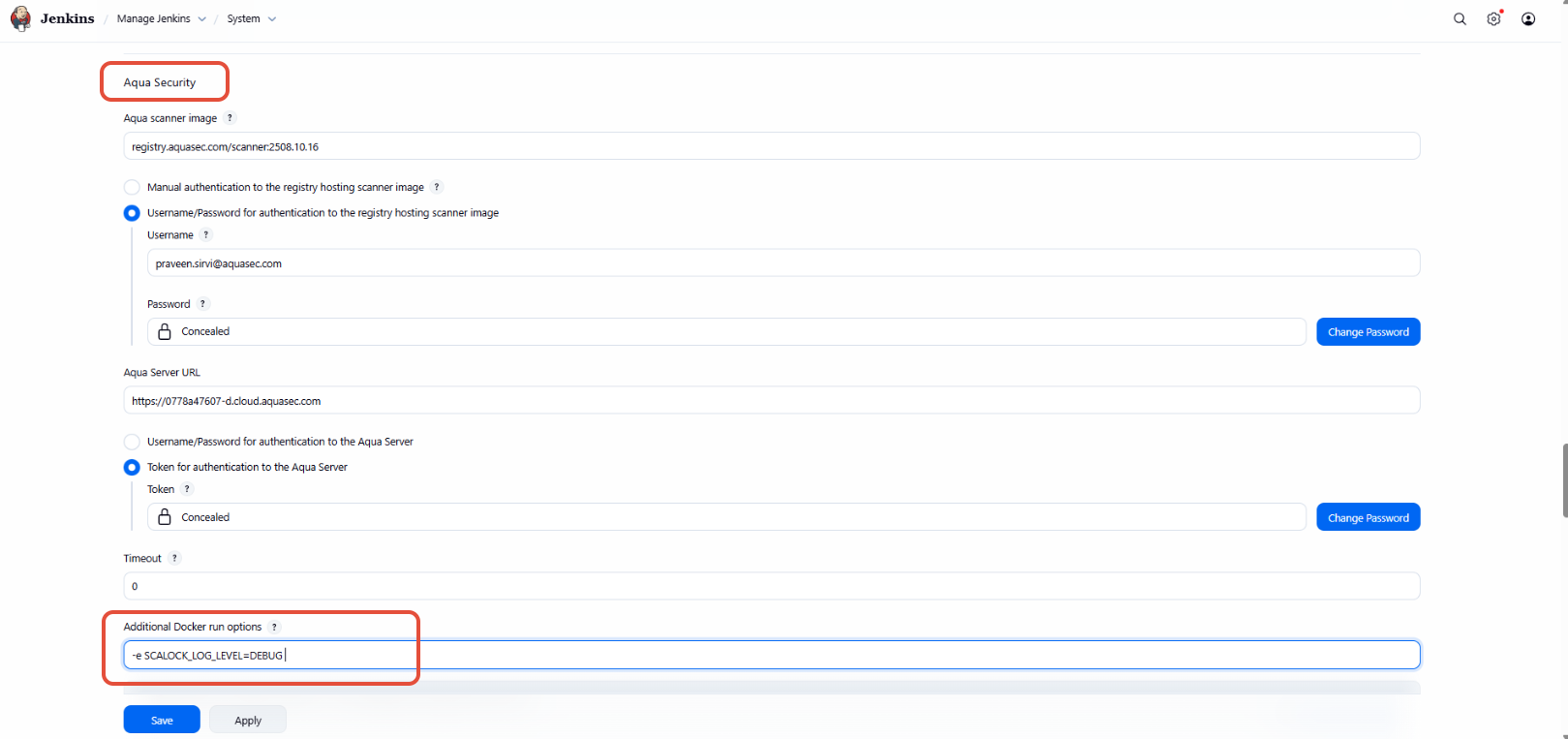 Go to Manage Jenkins > System > Go to Aqua Security