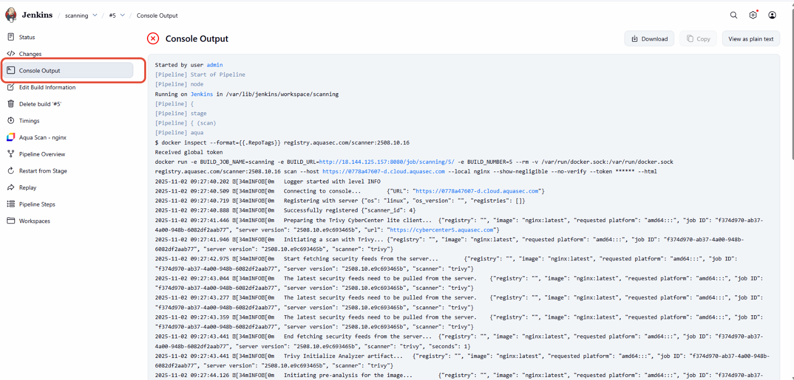 The Aqua Security Scanner Jenkins Plugin integrates seamlessly with Jenkins to enable automated container image scanning as part of your CI/CD pipeline. It helps to detect vulnerabilities, malware, and compliance issues in container images directly within Jenkins jobs.