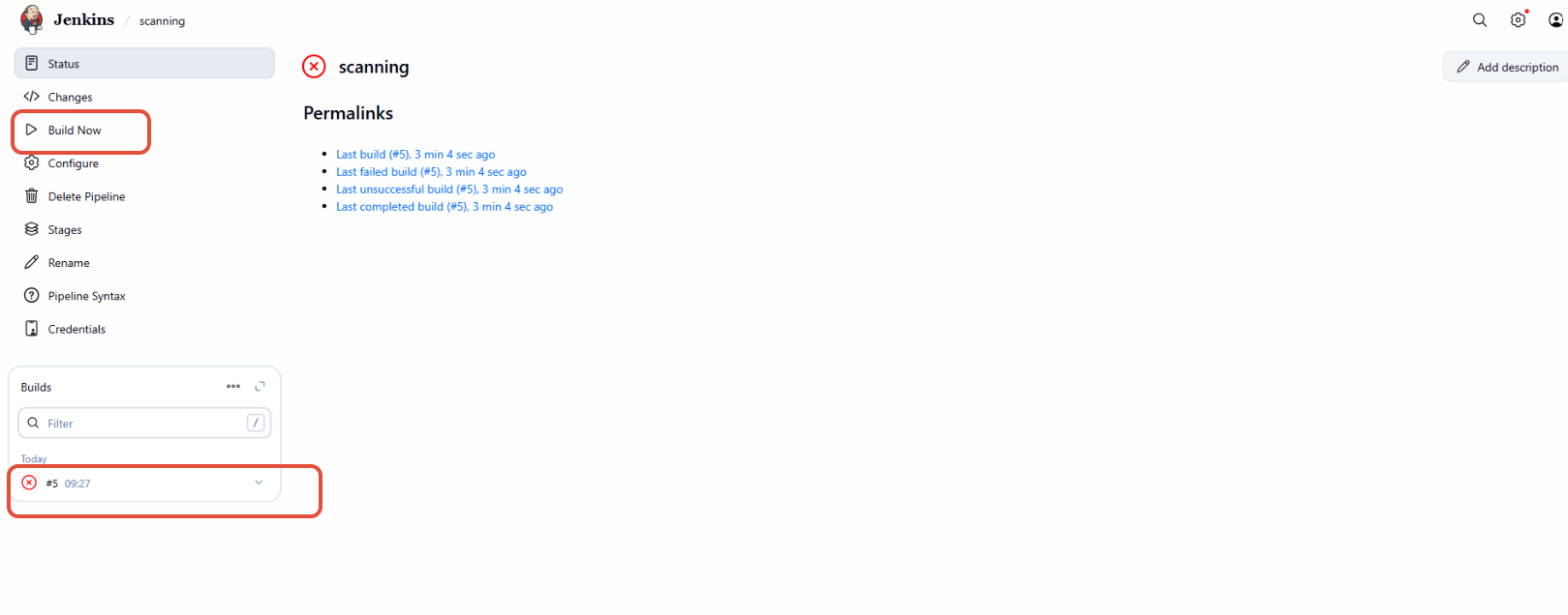 After this, click on build now. This will start scanning of image.