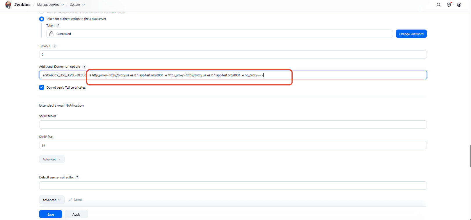Go to Manage Jenkins > System > Aqua Plugin > Additional Docker run options